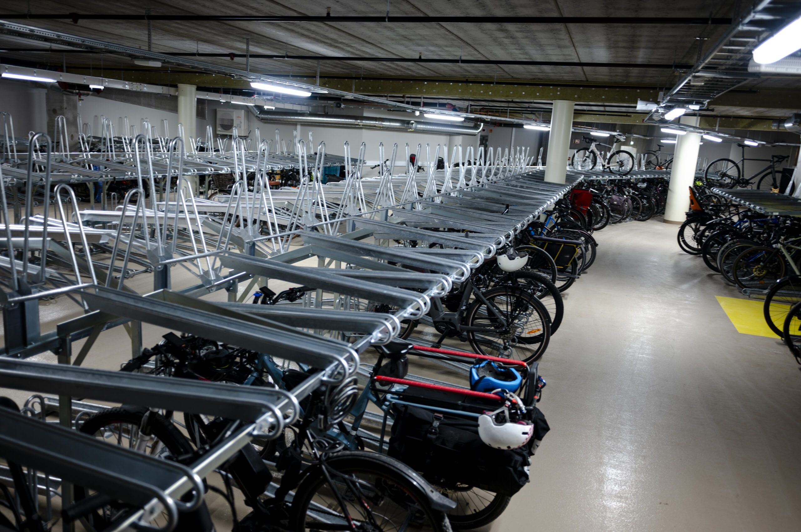 I tillegg til en innendørs sykkelparkering med plass til hele 964 sykler, er det også tilrettelagt for lading av elsykler og en egen servicestasjon for reparasjon og vask.