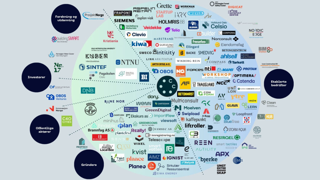 Construction City Cluster omfatter hele verdikjeden fra lovende oppstartsbedrifter til store entreprenører og FoU institusjoner. Se hvem du kan samarbeide med her.